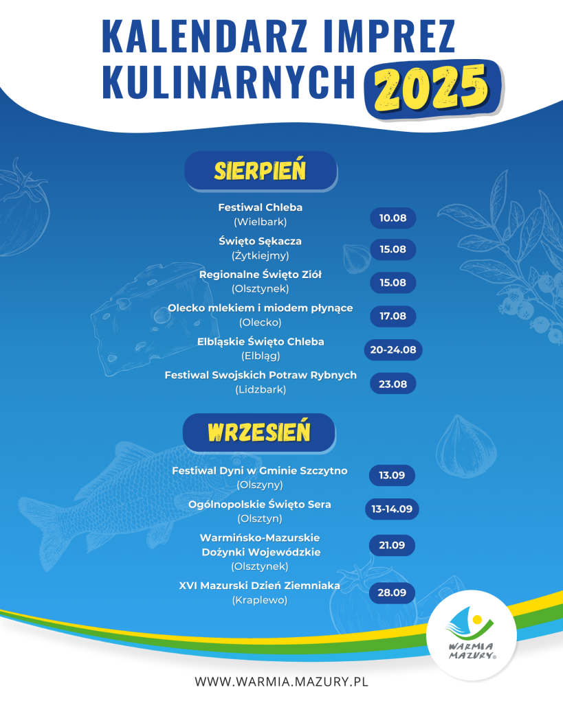 Sierpień oraz wrzesień zapowiadają się naprawdę smakowicie! Przygotowaliśmy dla Was zestawienie wydarzeń współfinansowanych. współorganizowanych i pod patronatem Samorządu Województwa Warmińsko-Mazurskiego.