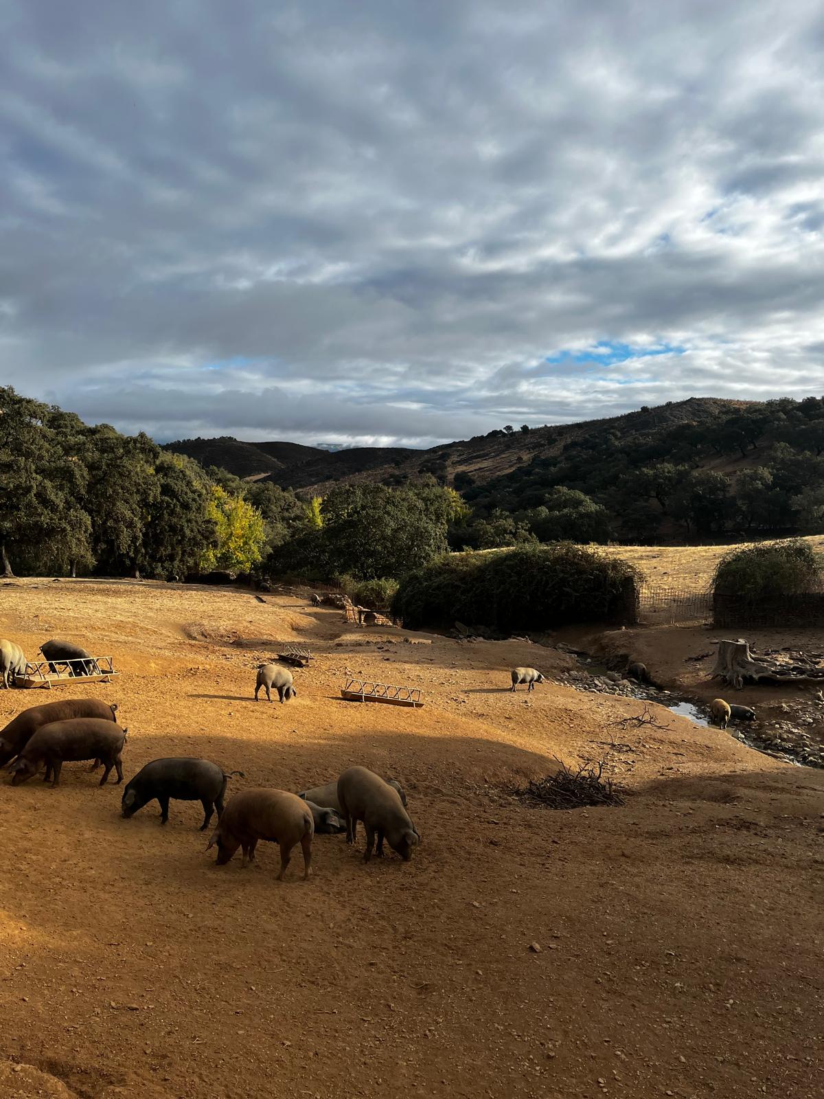 w dehesach z różnych prowincji, w tym Sewilli. Chociaż ostateczna produkcja tej szynki